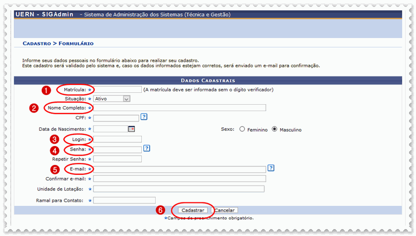 c) Clique em (6) cadastrar;