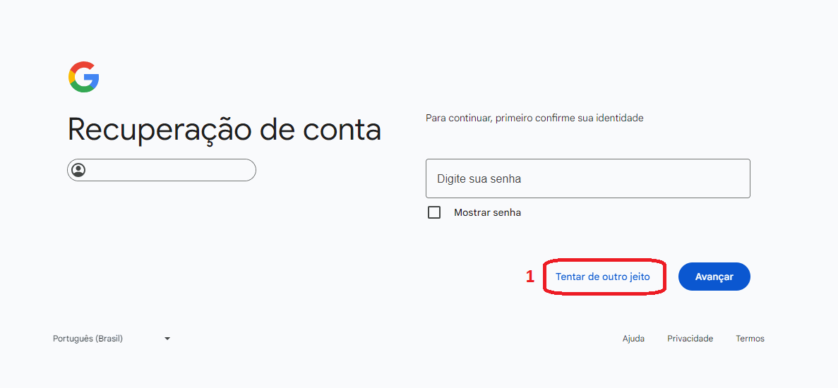 b) Como não lembra da senha, clique em (1) Tentar de outro jeito;