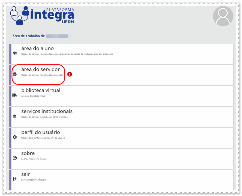 b) Clique na (1) área do servidor;
