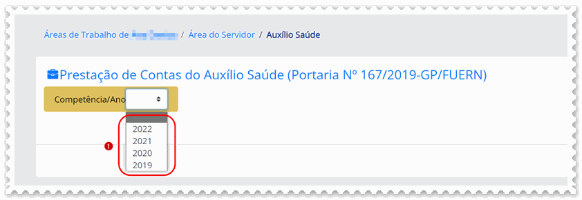 e) Selecione o (1) a competência/ano ano desejado;