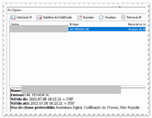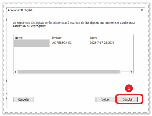 g) Nesta etapa você pode selecionar a ID digital criada e fechar esta janela.