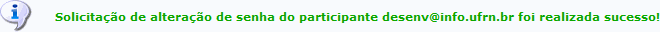 Clique em Reenviar Senha para dar prosseguimento a operação. O sistema reenviará a senha do usuário para o e-mail informado. Exemplificaremos a operação com os seguintes dados: