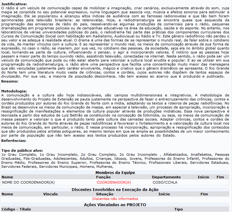 Nesta tela, o usuário terá acesso à lista de ações de extensão que já foram aprovadas, e as