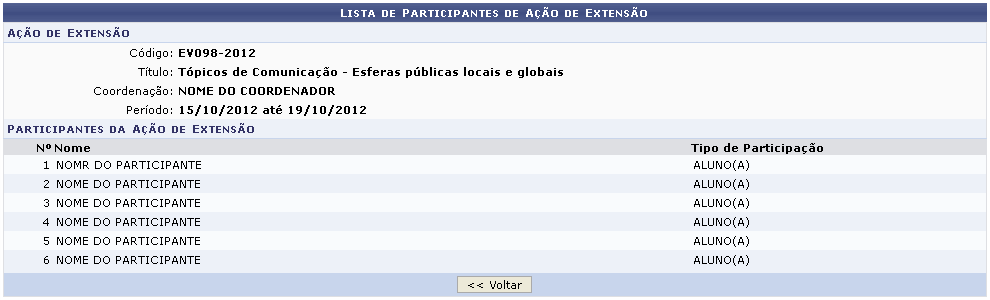 Caso queira retornar à tela anteriormente gerada, clique em Voltar. Esta mesma função será válida