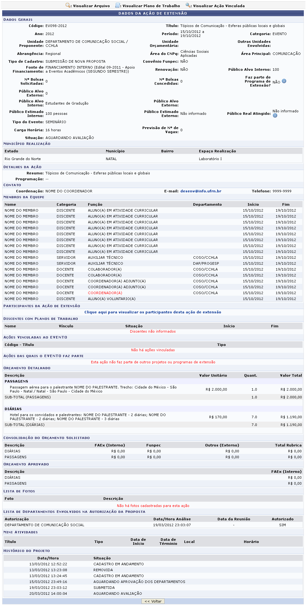 Esta funcionalidade permite que o membro do comitê de Extensão avalie propostas de Ações de