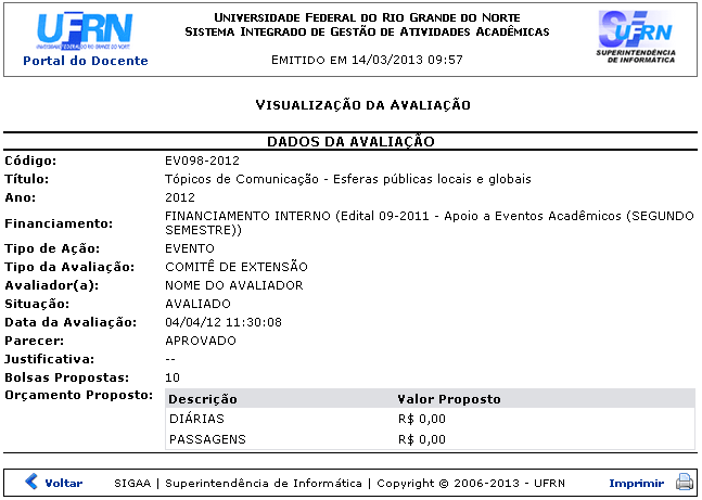 [SIGAA - EXTENSÃO] Avaliar Propostas de Ações