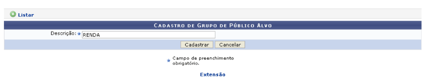 [SIGAA - EXTENSÃO] Cadastrar Grupo de Público Alvo.