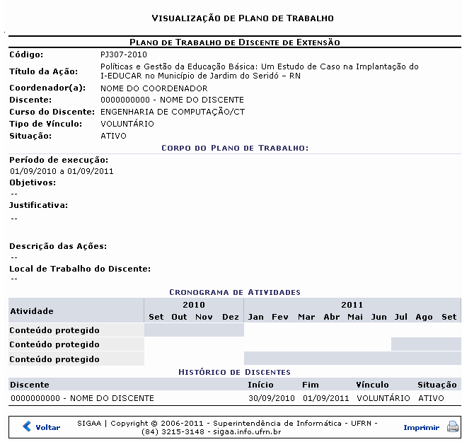 O relatório com a Visualização de Plano de Trabalho será mostrado em uma nova página.