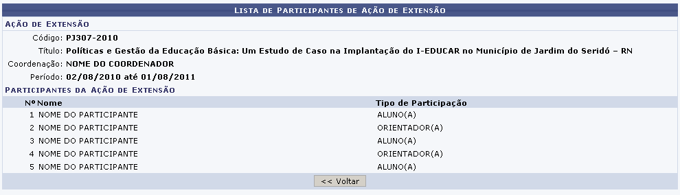 Uma nova página com a lista dos participantes da ação será carregada.