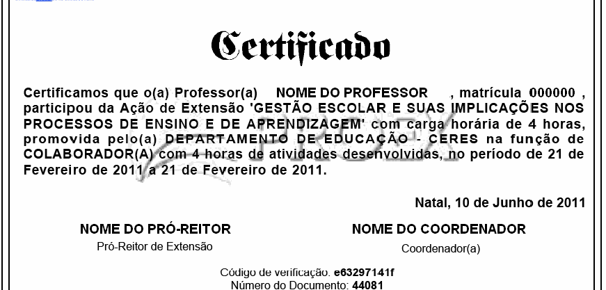 Para realizar esta operação, acesse o SIGAA → Módulos → Extensão → CPP → Emissão de Documentos → Emitir Certificação/Declaração.