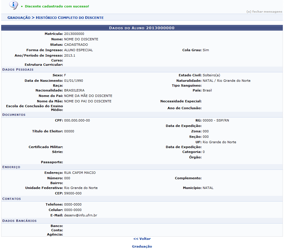 Esta funcionalidade permite que seja efetuado o cadastro de discentes antigos dos cursos de graduação que foram ou estão vinculados a Instituição e que não possuem cadastro no sistema. A utilização desta função será feita pelos funcionários do DAE (Departamento de Administração Escolar).