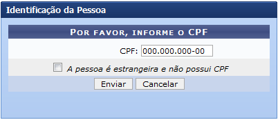 A seguinte página será apresentada pelo sistema permitindo que o usuário informe a Identificação da Pessoa.