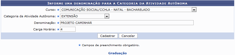 [SIGAA-GRADUAÇÃO] Cadastrar Tipo da Atividade Autônoma