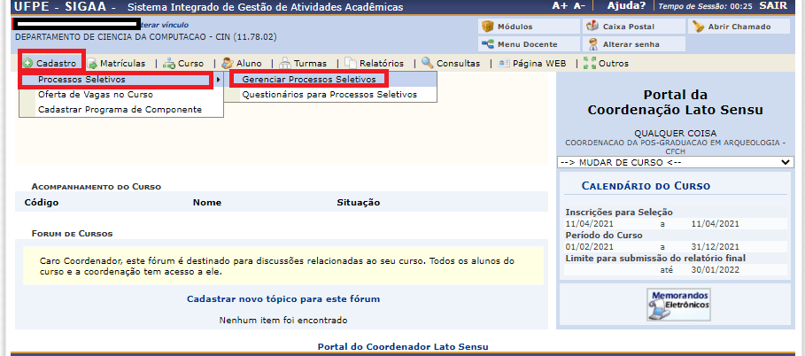 [SIGAA- Lato Sensu] Cadastrar Discente em Curso