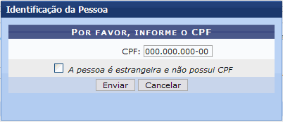 Desejando realizar um novo cadastro de pessoa, clique em Novo Cadastro de Pessoa. O sistema direcionará à primeira tela deste manual.