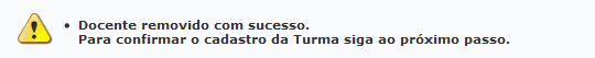 Caso queira Remover o docente cadastrado, clique no ícone Lixeira. Uma mensagem de sucesso será exibida: