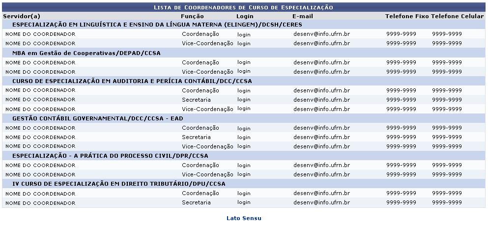 [SIGAA-Lato Sensu] Listar Coordenadores dos Cursos de Especialização