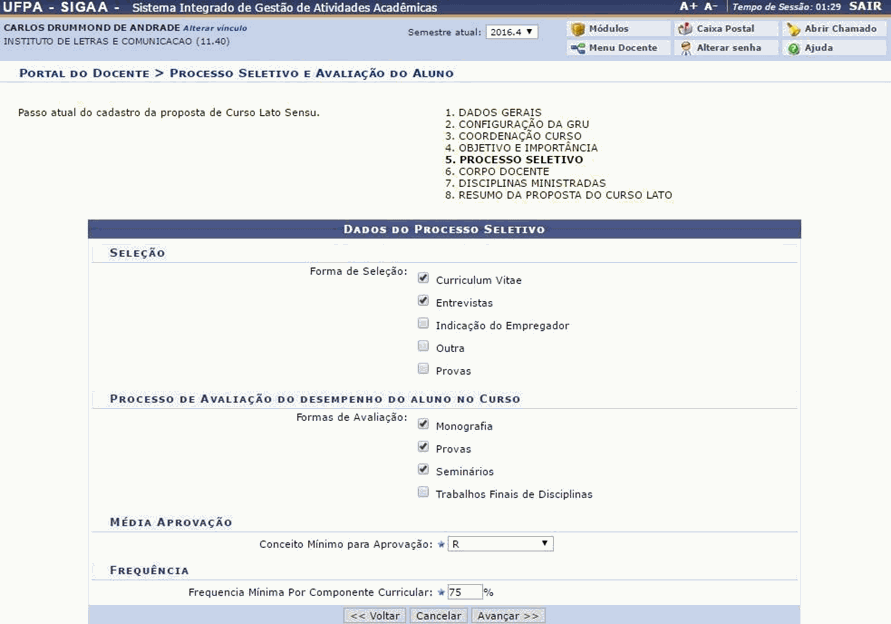 Cadastro de Propostas de Cursos de Lato Sensu (PROFESSOR)
