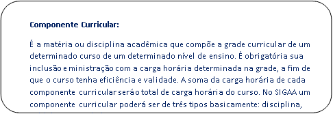 - Estágio: Informe a quantidade de carga horária para Estágio nesse componente curricular;