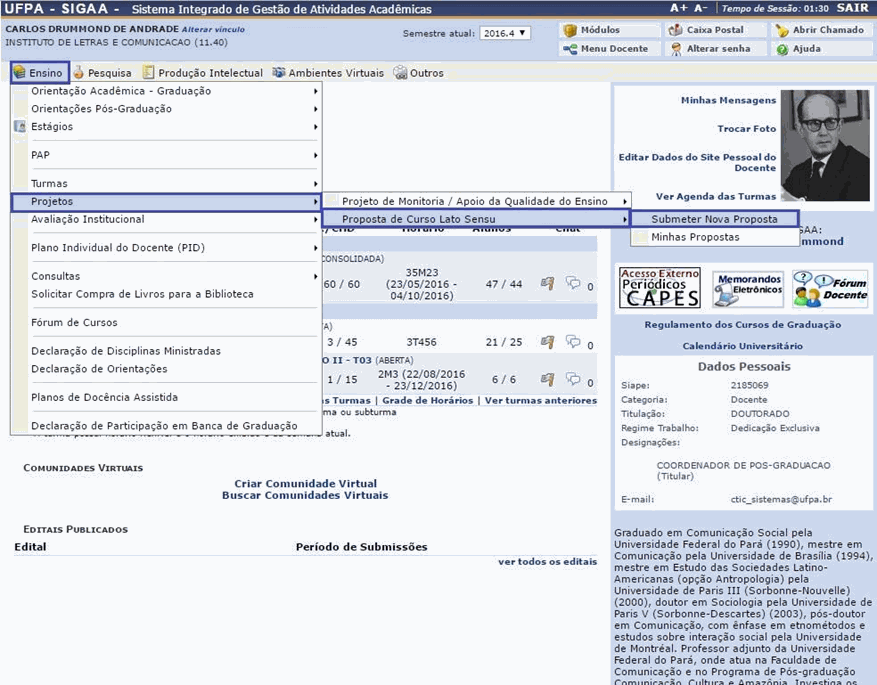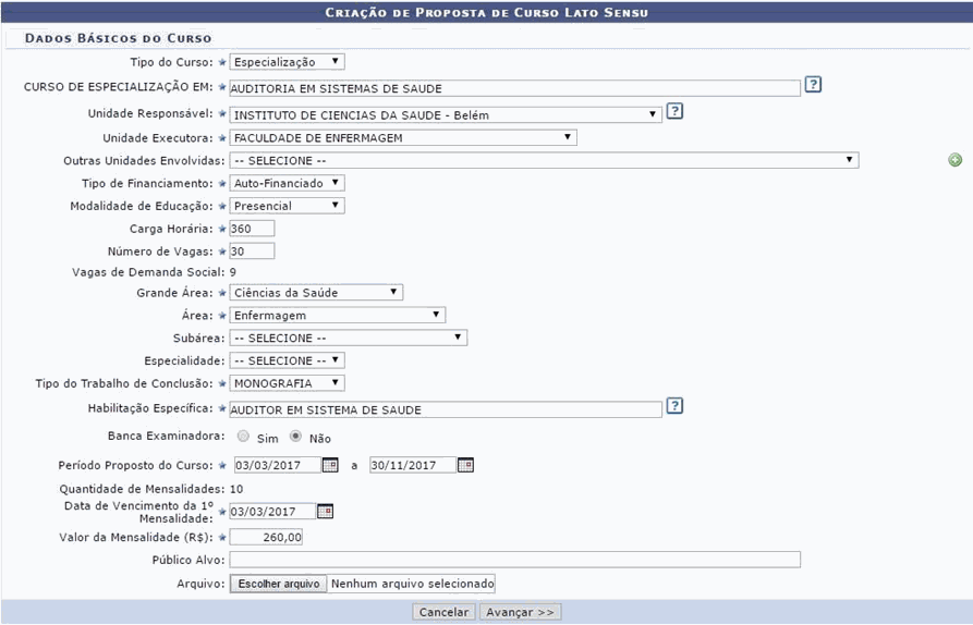 Proposta de Curso Lato Sensu → Submeter Nova Proposta