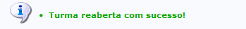 Confirme a reabertura da turma, clicando em OK. A mensagem de sucesso será gerada:
