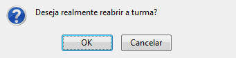 Para Reabrir Turma, clique na opção Reabrir Turma. Uma caixa de diálogo será exibida para confirmação do processo.