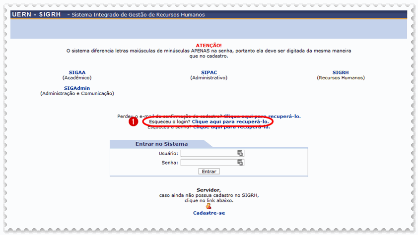 Obs.: Os sistemas SIGRH, SIPAC e SIGAA utilizam o mesmo login.