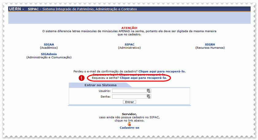 [SIGAA] Recuperar senha
