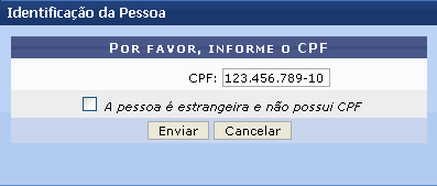 Inicialmente, o usuário irá informar o CPF do discente. Se o mesmo for estrangeiro, selecione a opção A pessoa é estrangeira e não possui CPF.