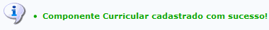 Os componentes curriculares são as disciplinas, atividades acadêmicas específicas, blocos e módulos oferecidos pelos cursos da Instituição. Nesta funcionalidade, o usuário poderá cadastrar um novo componente curricular.