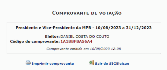 a) Para imprimir o comprovante de votação o eleitor deve selecionar a opção “Imprimir comprovante”.