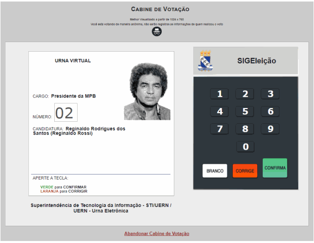 e) Se o eleitor esquecer o número do candidato/chapa em que for votar é só selecionar a opção “Abandonar Cabine de Votação”. Assim, o sistema retornará à tela com a lista