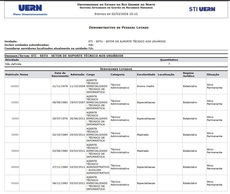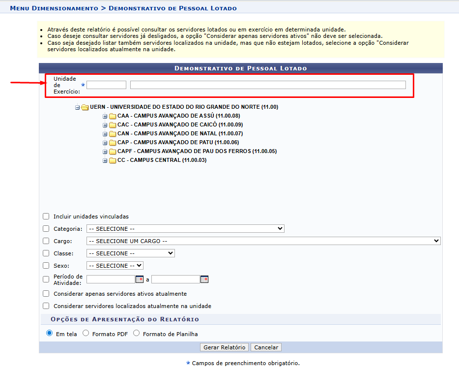 O relatório de todos os servidores daquela unidade será feito automaticamente.